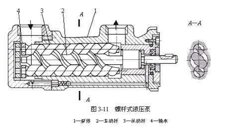 螺桿泵嚙合線較長,吸、排油口之間的封油長度大,所以容積效率高,工作壓力高達(dá)20MPa。螺桿泵結(jié)構(gòu)緊湊,工作平穩(wěn),噪聲小,常被用于精密機(jī)床液壓系統(tǒng)。其缺點(diǎn)是螺桿精度要求高,加工較困難。