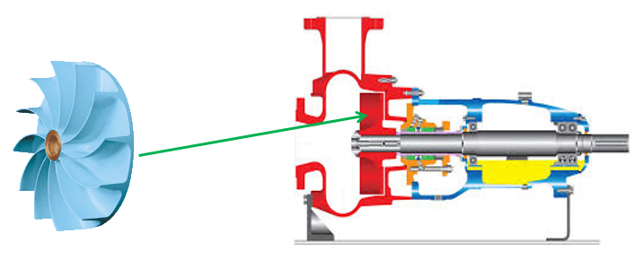 下圖很好地展示了葉輪,旁邊的剖面圖說明了泵內的葉輪位置