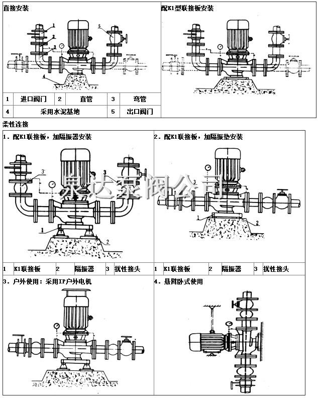 6.管道泵可根據管路布置的要求采用泵的豎式和橫式安裝。