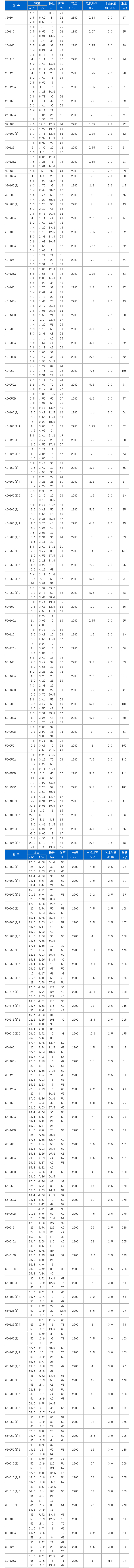 ISG管道離心泵性能參數表: